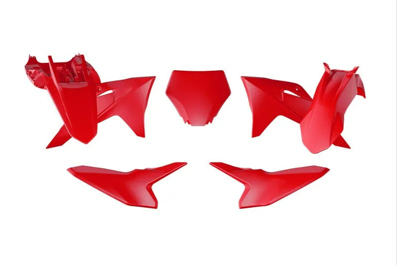 Plastic kit bevat:VoorspatbordAchterspatbordRadiator KappenZijpanelen + luchtfilterkapVoornummerplaatVoorvork beschermers